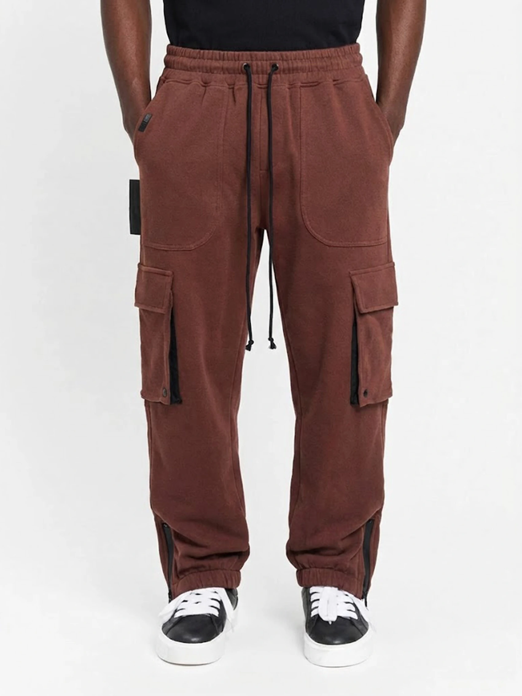 Conta com bolsos utilitários amplos com lapela, reforçando a estética urbana e funcional da peça. A barra com elástico e zíper lateral proporciona versatilidade no caimento e um visual mais estruturado.
