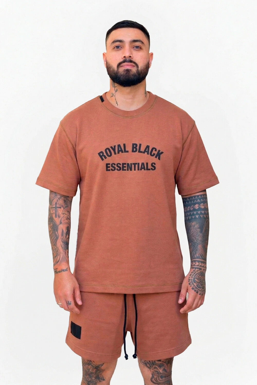 Estampa: Inscrição centralizada "ROYAL BLACK ESSENTIALS" em arco, trazendo um toque minimalista e industrial.