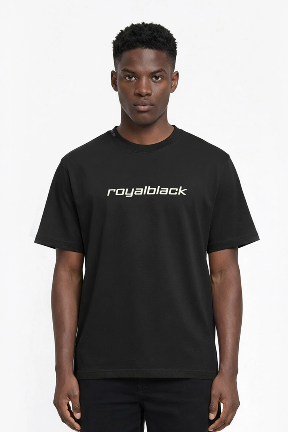 Na frente, o lettering “royalblack” centralizado com tipografia moderna transmite atitude e identidade urbana.