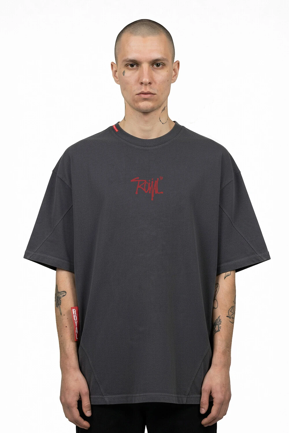 A estampa Royal ST traz o logo “Royal” em tipografia script com estética urbana, aplicado de forma centralizada no peito. O design minimalista, porém marcante, reforça a identidade da marca com uma pegada street autêntica e sofisticada, criando um ponto de destaque clean e imponente na peça.